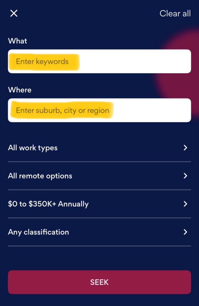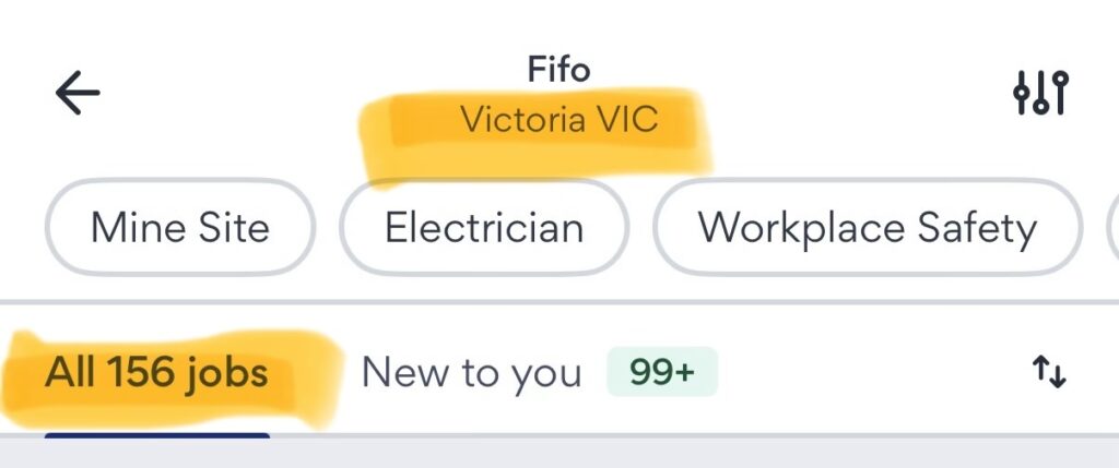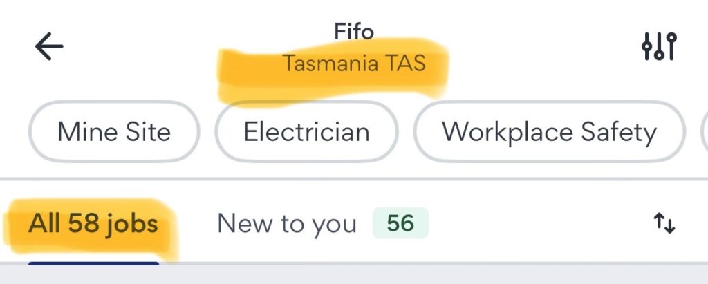 Seekの検索欄のKeywordsに「Fifo」、Suburbにそれぞれの地域を入力して、仕事の数を比較してみました。
