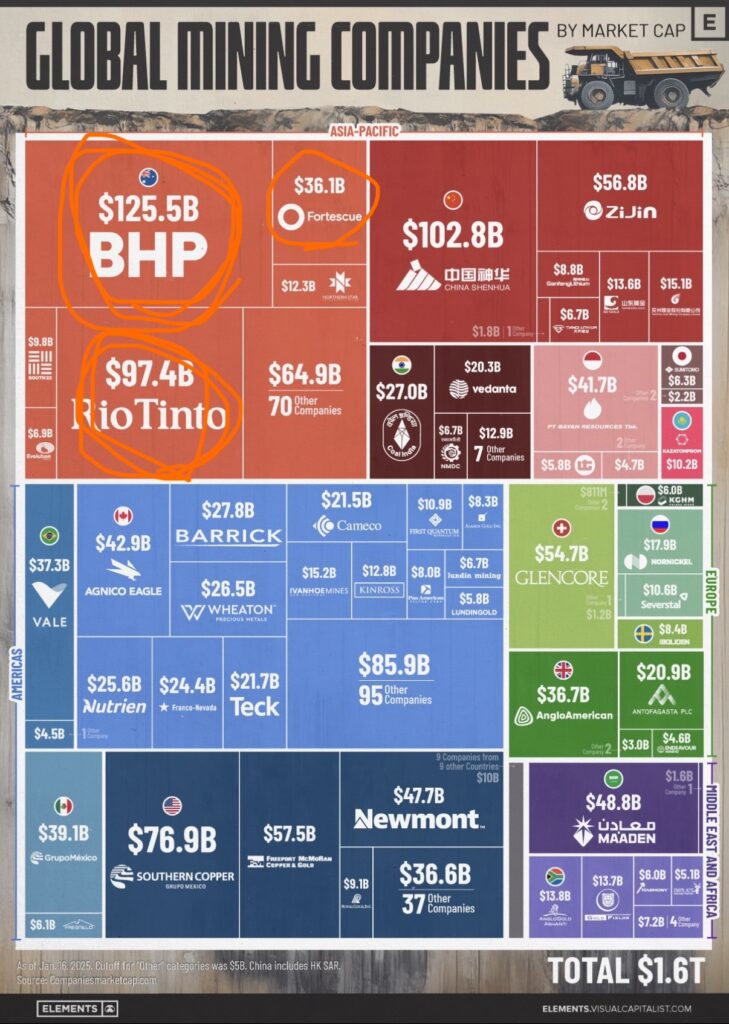 以下の図からも、BHP、Rio Tintoが世界規模で、大きなマイニング会社だということがよくわかります。