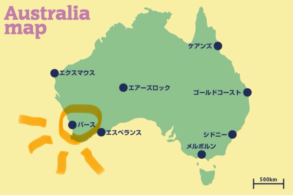 (実はわたしは、彼に教えてもらうまで、ワーホリに来るまで、Perthについて名前も知らず、全く何も知りませんでした。笑)