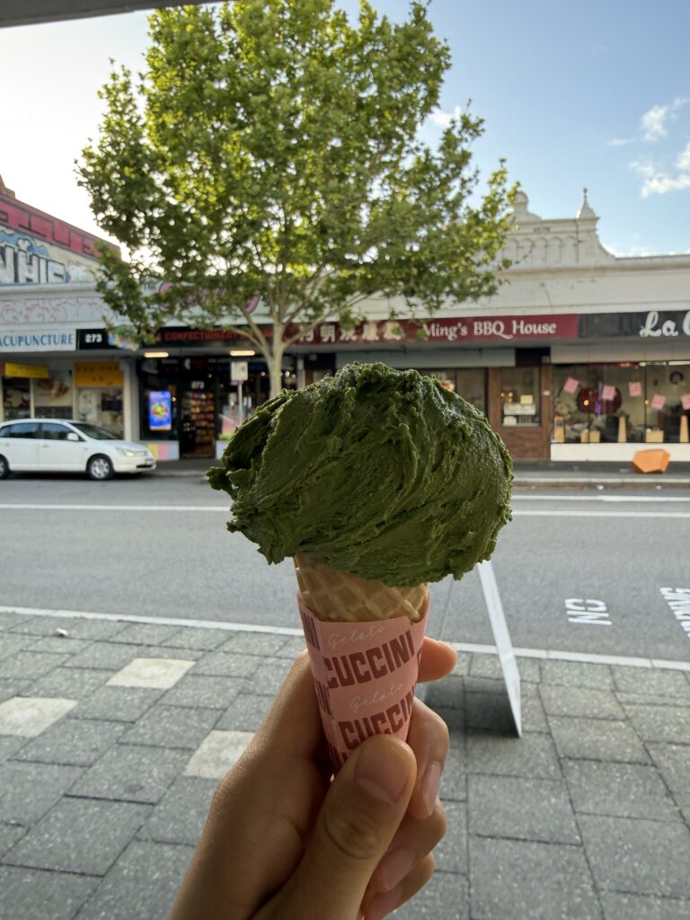 街のお茶屋さんで食べる抹茶ソフトみたいな優しい抹茶の味でした。