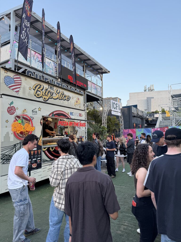 物販や、お酒、ちょっとした軽食のピザなどのお店があり、立ち話をしたり、写真を撮ったり、オーストラリアのシティ版”チル”といった感じ。