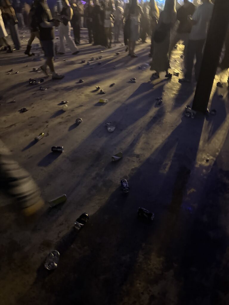 足元は散らばる空き缶・空き瓶たち。オーストラリアっぽい。
