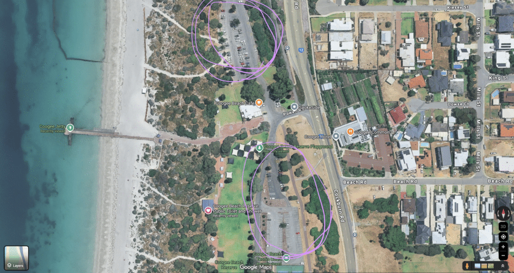 その中でも、おすすめの場所・駐車場は、Coogee Beach Jettyの近くにあるところです。なぜなら、後から紹介する、公共トイレの中にホットシャワーがあるからです!
