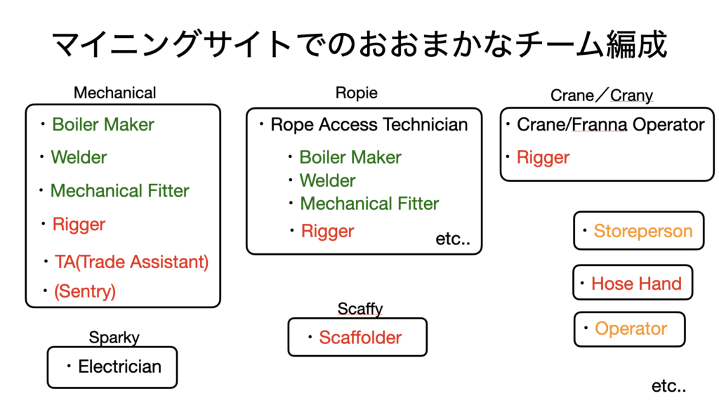 そして次は、実際にマイニングサイトで働く時のよくあるチーム編成を基準に、職種についてまとめてみました。