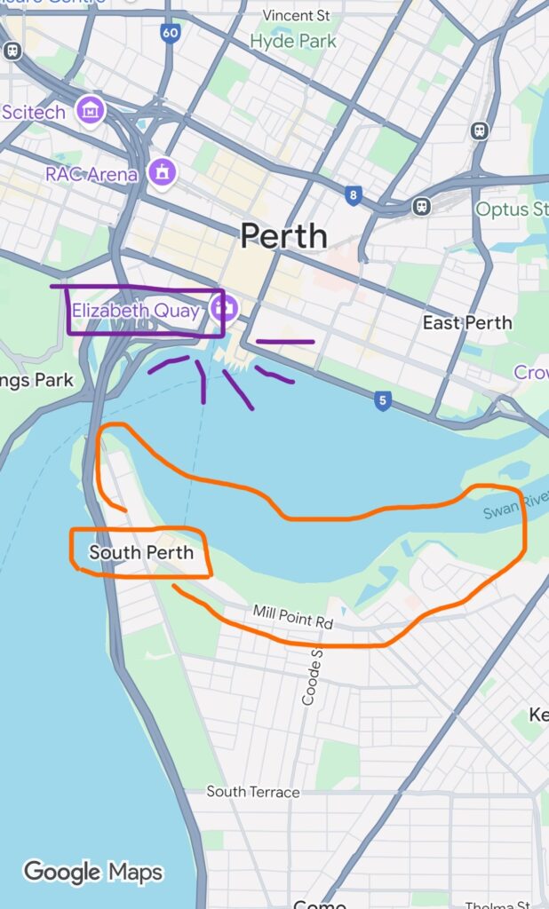 South Perthから徒歩だと少し距離がありますが、車で10分ほどだと思います。