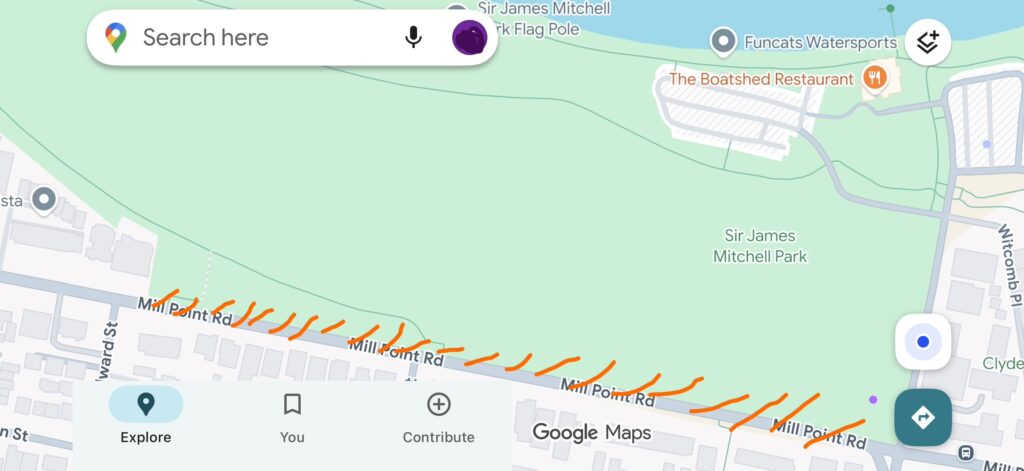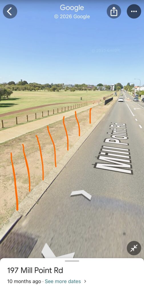 このMill Point Road沿いに車が駐車できるスペースがあり、すでに駐車列ができていました。
