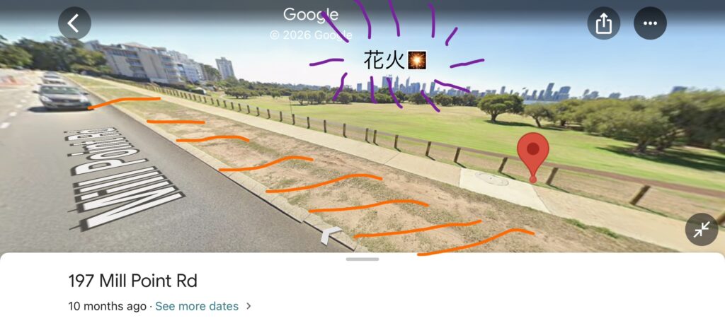 P.S. 2025年の年越しでは、同じSouth PerthでもSwan River沿いの芝生の上で年越し花火を鑑賞しました!