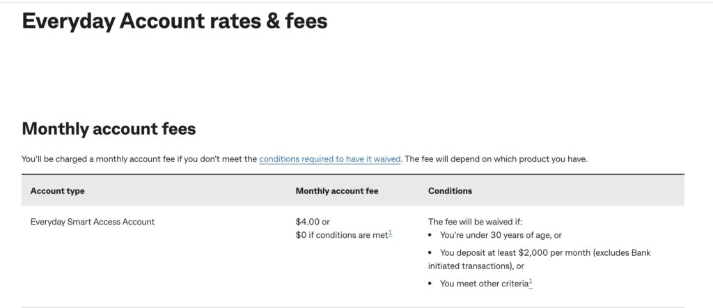 30歳未満で口座維持費が免除ということは、ワーホリでオーストラリアに来る方は、多くの方が$0の条件を満たせるようになっているということになります!