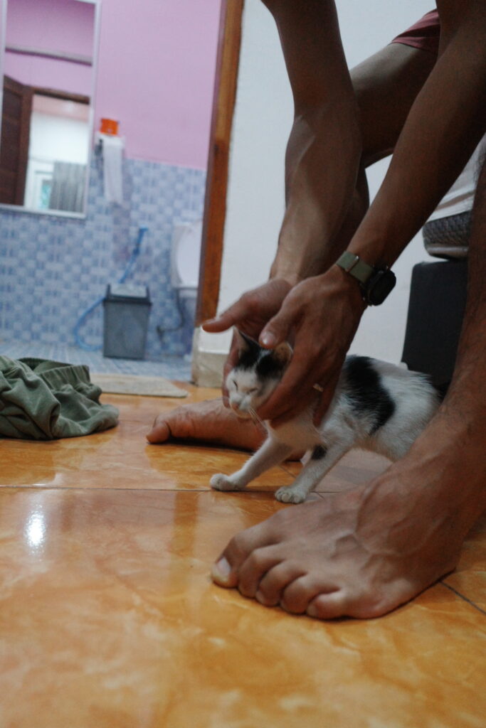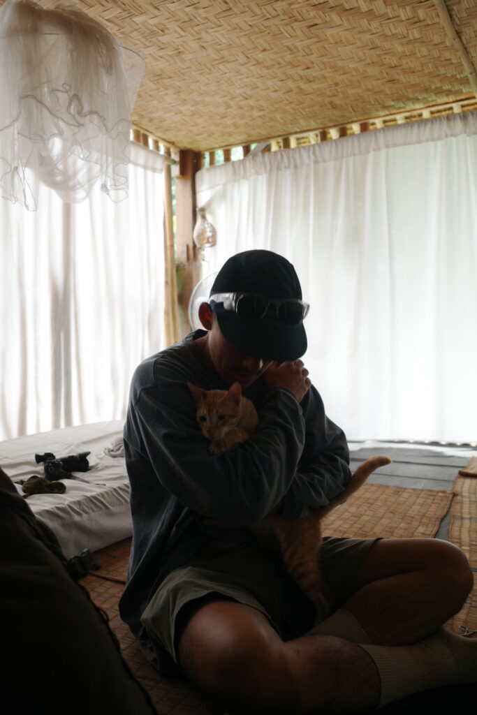 野菜たっぷりのカレーヌードルもおいしかったです。さっきとは違う猫ちゃんも遊びに来ました。
