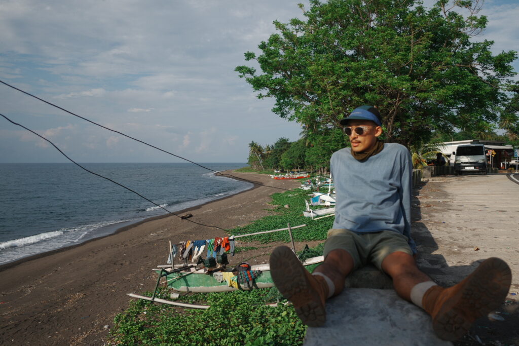 海が見えてきたので、またまたちょっと休憩。Hijauのオーナーが別れ際にくれたお菓子をいただきます。