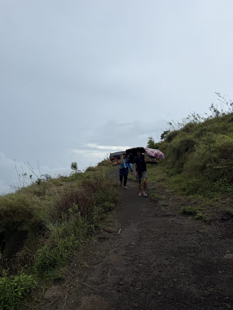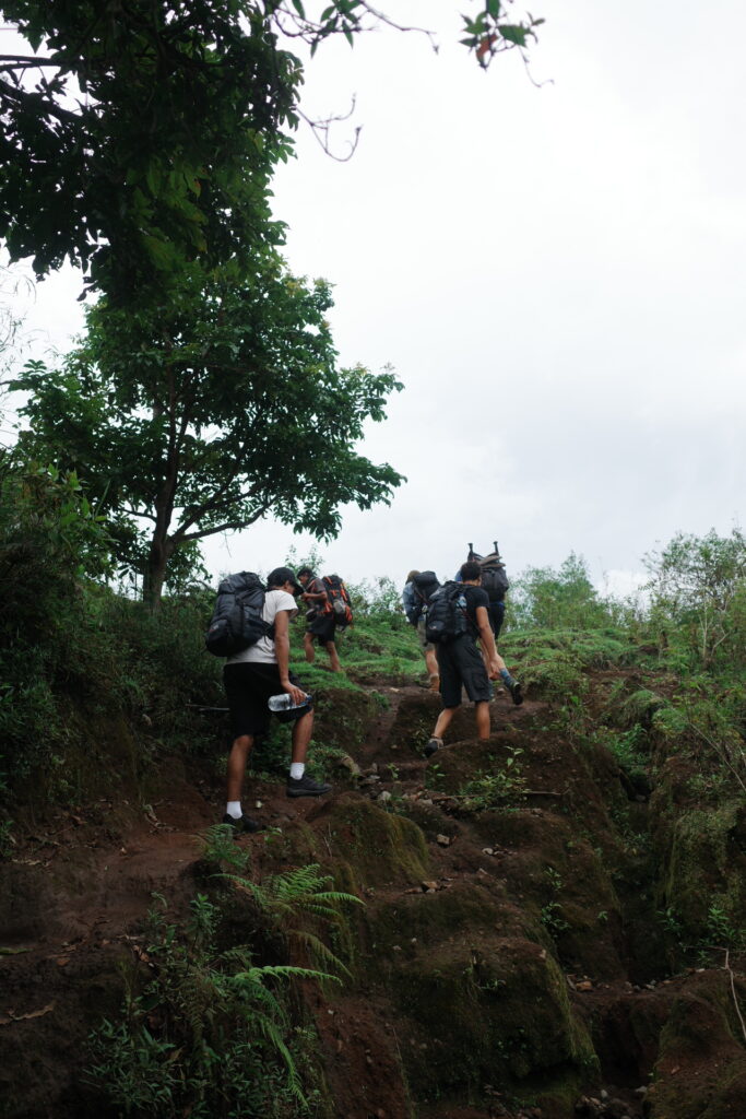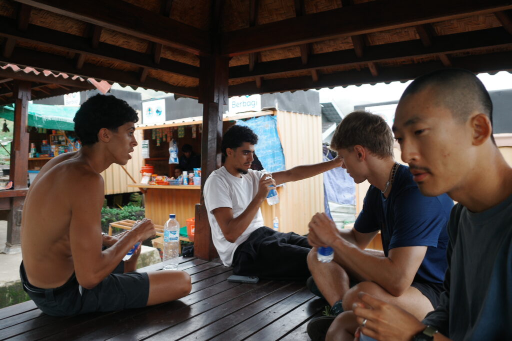 「タクシー??」と誘惑しながら途中で待ち構える現地のおじちゃんたち。これまたインドネシアらしい。希望があれば次のポイントまでバイクで送ってもらえます笑。正直、ここから次のポイントまではそんなにキツくないので、ここで使うのはもったいないです。肝心のきついところでは、もちろんバイクなんて使えませんが。