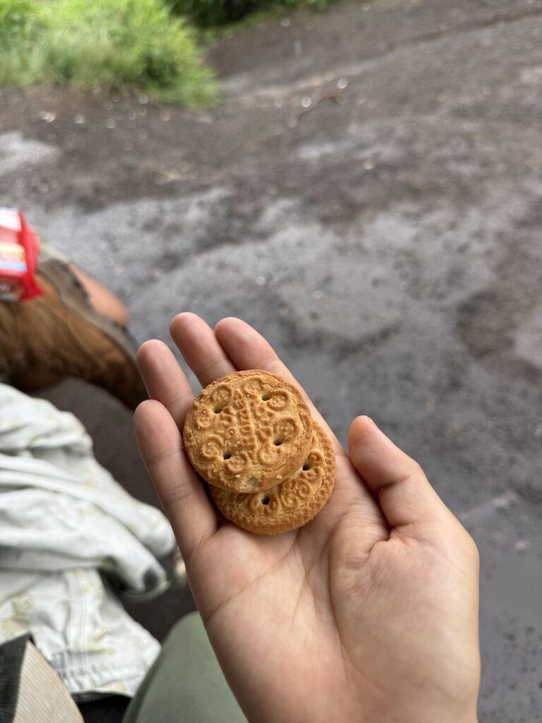 ガイドが用意してくれた大袋のビスケットをみんなでシェアして休憩。