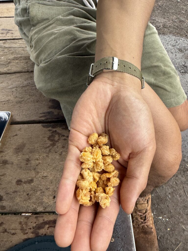ツアーメンバーがロンボクで買ったという、コーンを揚げたスナックを分けてくれました!甘いビスケットに塩気がプラスされていい感じ!優しいメンバーたちに恵まれて感謝!