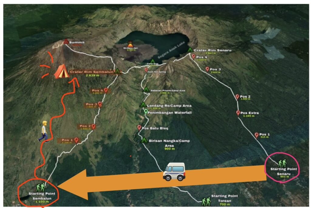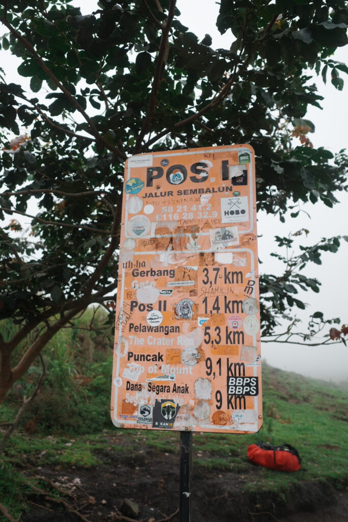 Sembalunから登り始め、POS1、POS2、POS3、POS4を通過し、標高2639mのところにあるキャンプサイトまで行き、テントで寝る予定となっています。