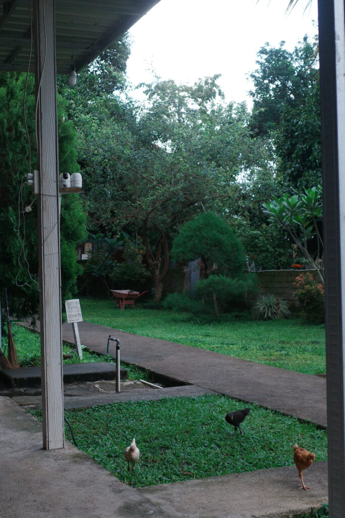 庭でニワトリたちがちょろちょろしている穏やかな朝です。