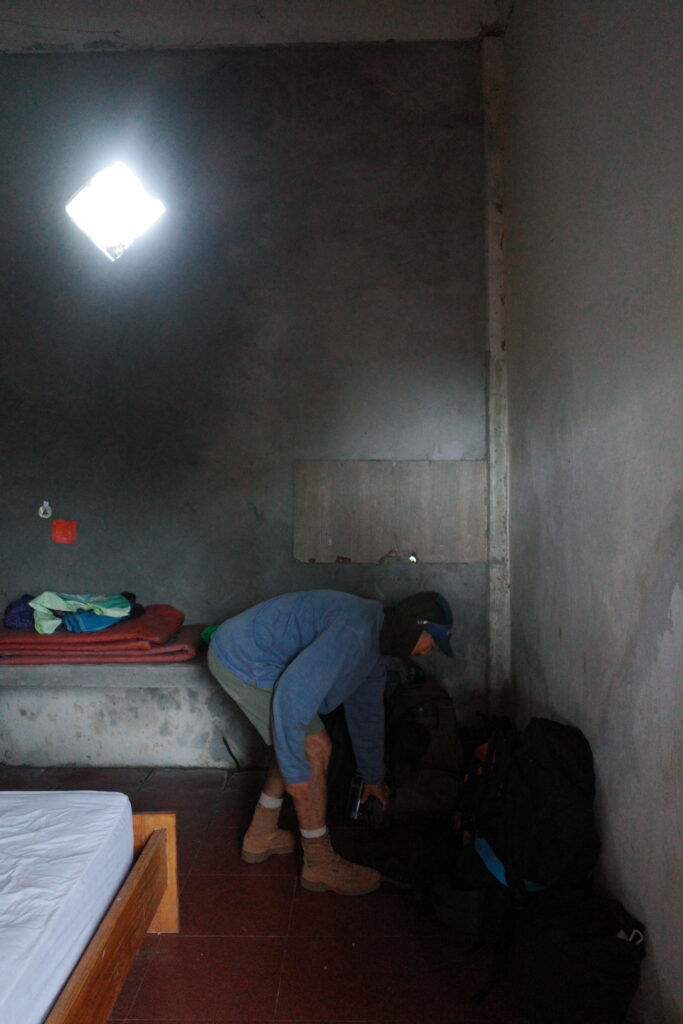 ただ、用意してもらったマットレスとシュラフがめちゃくちゃ薄くて、体は痛いし寒いしで、夜間は途中で何度も起きてしまい、とても大変でした…泣