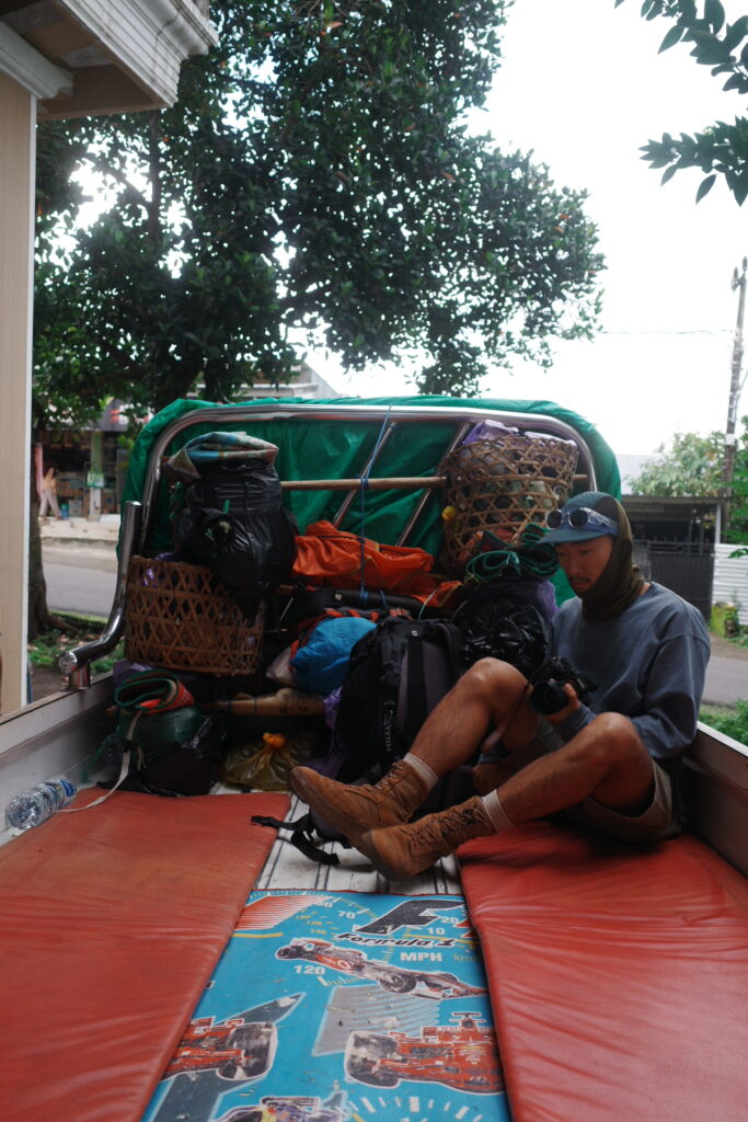 出ました!この軽トラの荷台に、ツアー客5人+ガイド1人+食事・テント準備のスタッフ2人が乗り込みます…!