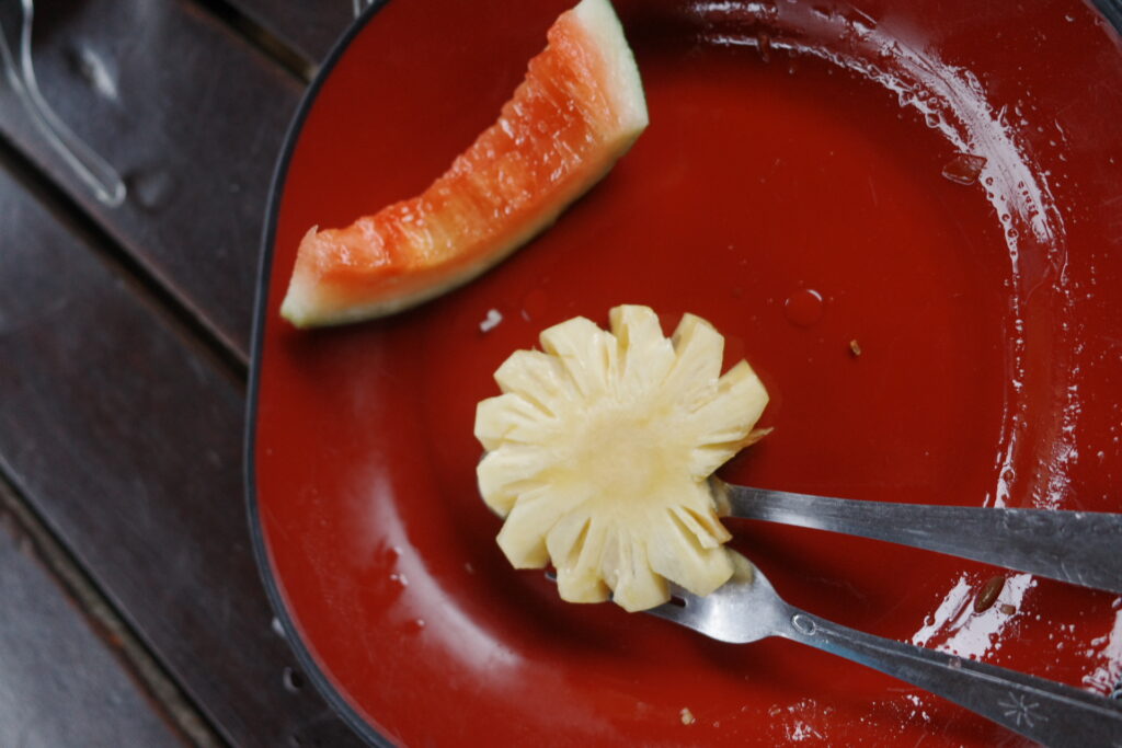 パイナップルのカットの仕方がかわいくてほっこり。