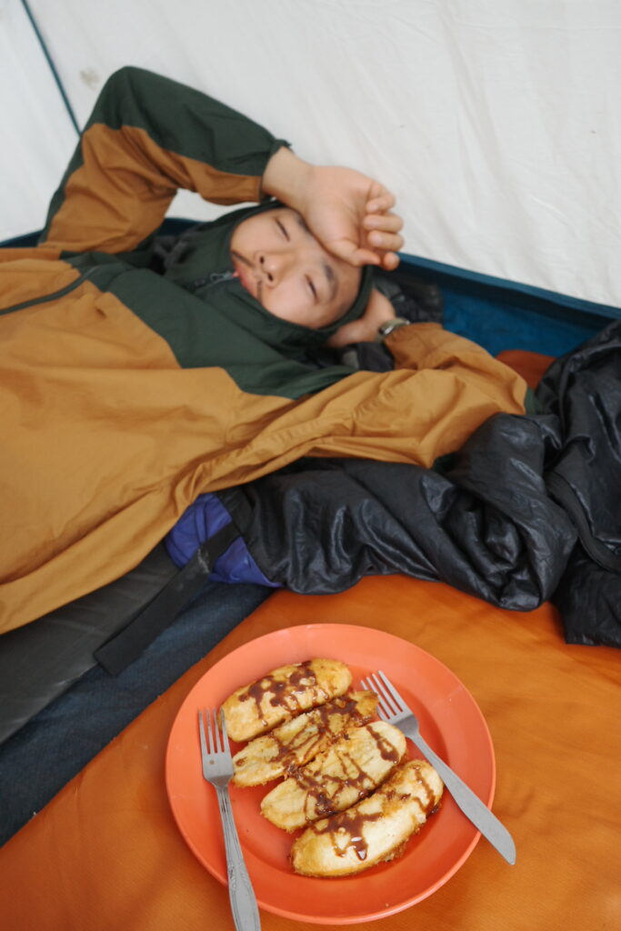インドネシアのお菓子である揚げバナナを作ってくれたのですが、彼は若干高山病気味で、食欲も出ず。かなりしんどそうでした…。疲れていたのもあり、甘い揚げ物はあまり歓迎ではなかったのは内緒です。