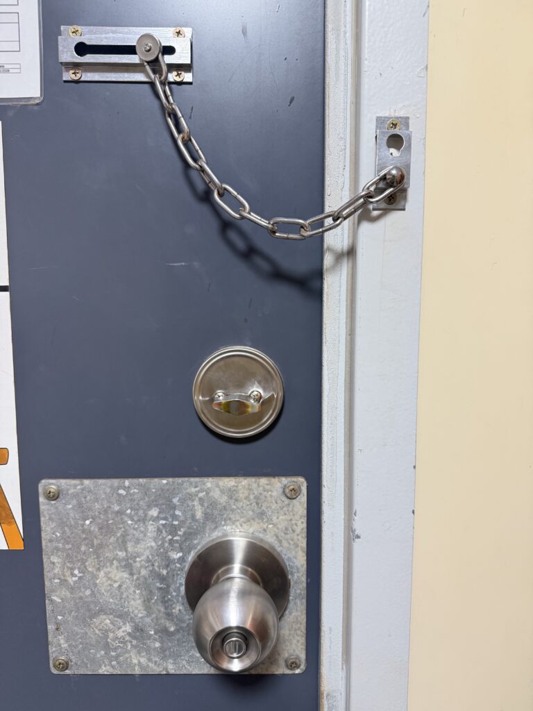 多くのキャンプで、ドアの鍵とは別にチェーンロックも設置されています。