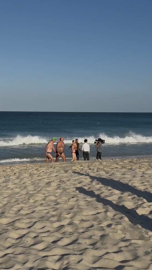 そして、City Beachに泳ぎに来ました!朝のビーチにも続々と人が集まってきます。