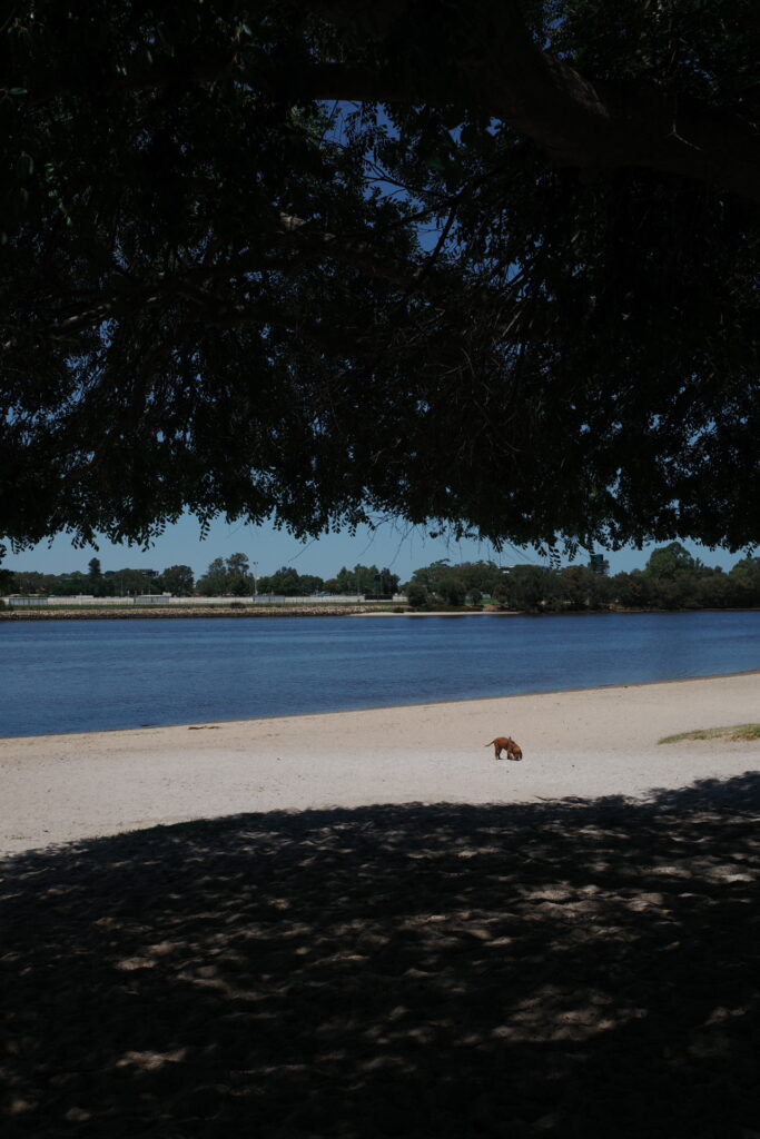 川を見渡せる木の木陰のいい場所を陣取りました!しばらくここで、散歩に来るたくさんのわんこたちや、ボートに乗る子どもたちを見ながら、のんびり過ごしました。