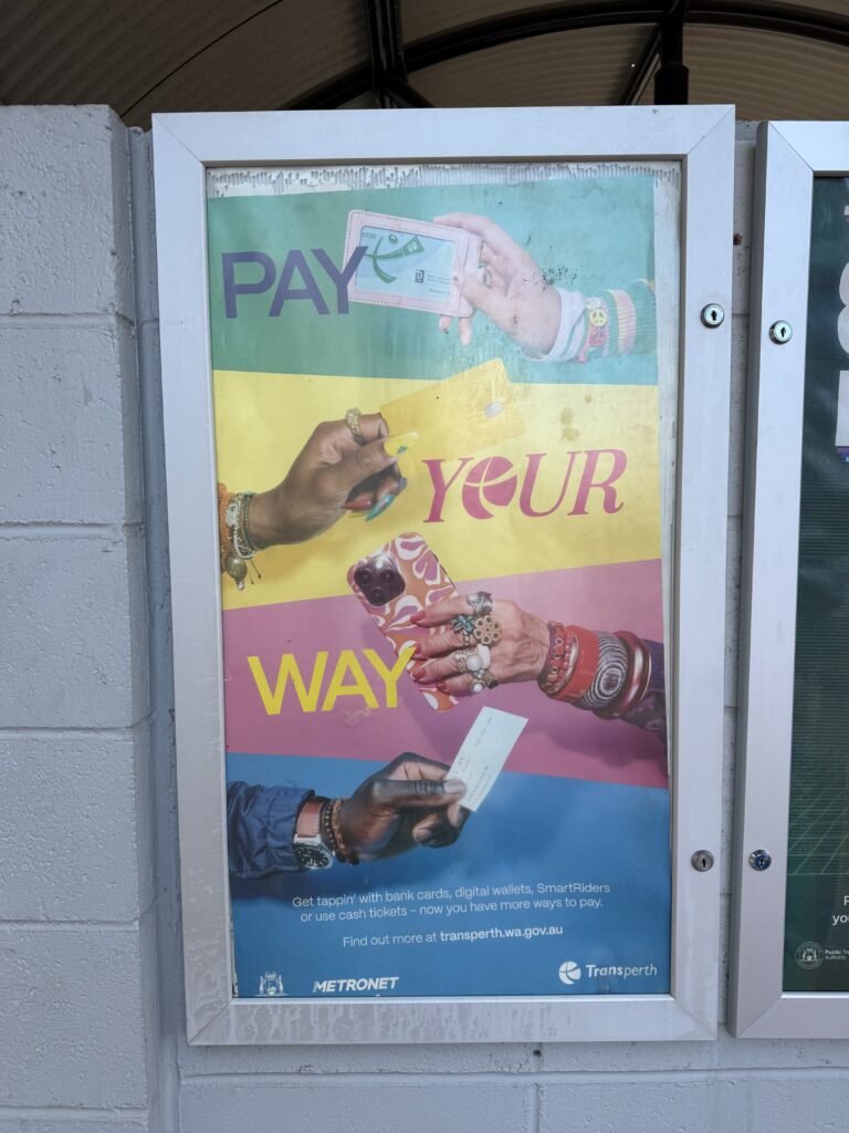 以前、飛行機の乗り継ぎでゴールドコーストに数時間滞在した際に、銀行のカード(Apple Payのタッチ)でバスに乗れてすごく便利だなーと思っていたら、いつの間にかパースでも交通カード(SmartRiders)以外でも電車やバスに乗れるようになっていて、感動しました!