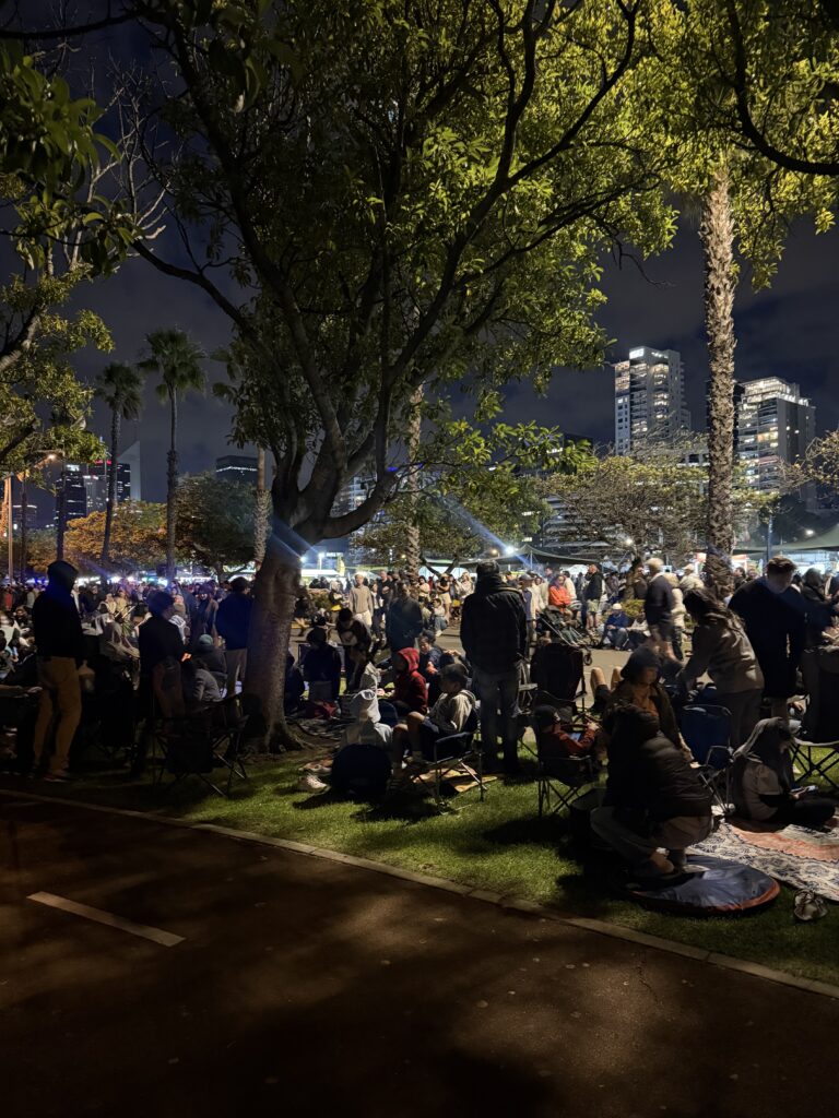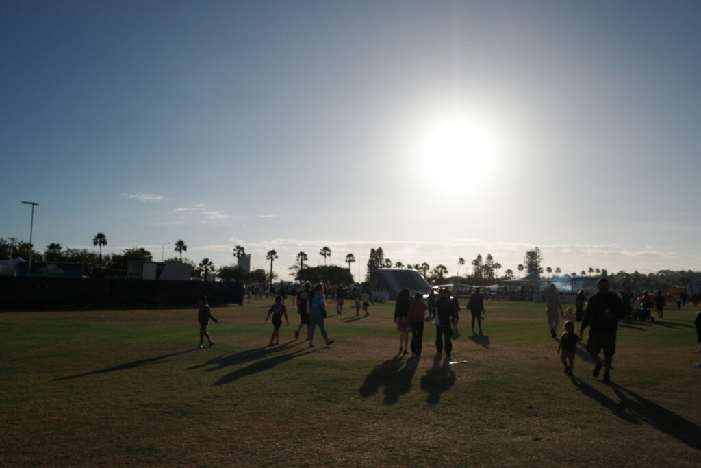 わたしたちが向かったのは、East PerthにあるLangley Parkです。すごくたくさんのフードトラックや、子ども向けのプチ遊園地、カルチャー体験コーナーなどがありました。人は多いけど、まだまだこのくらいならいけるな〜程度。