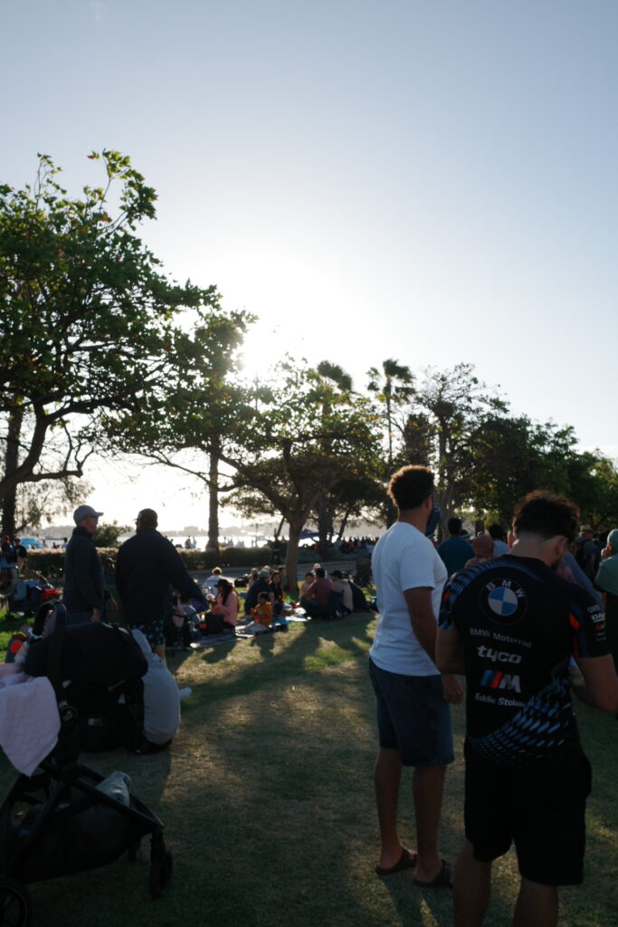 18時過ぎ、まだまだ明るいですがすでに場所取りがてらピクニックをしている人たちもたくさん。