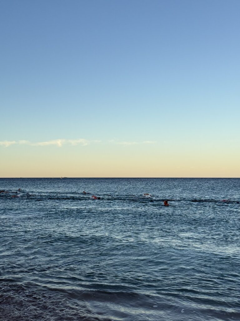 泳ぐ人たち。夏は、みんなで列になって一斉に泳いでいるグループなんかもいました!比較的波も穏やかなので、強い波が苦手なわたしでも一人で泳げます。