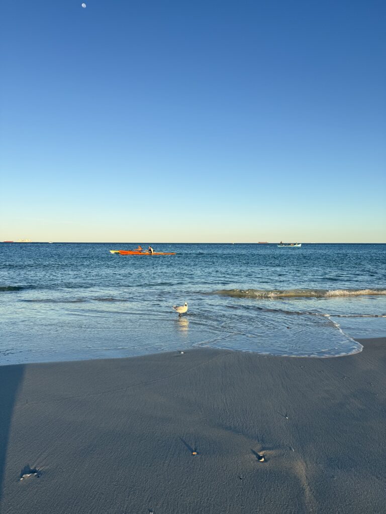 南北に長ーいビーチなので、座れる場所もたくさんあります。夕方に海に入る人も結構多いです。