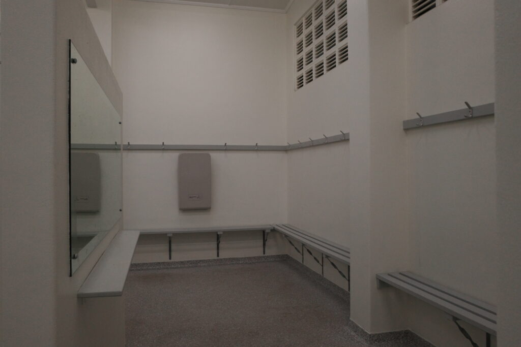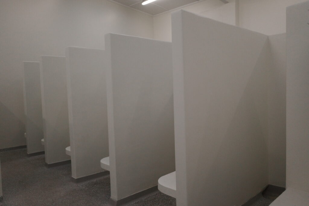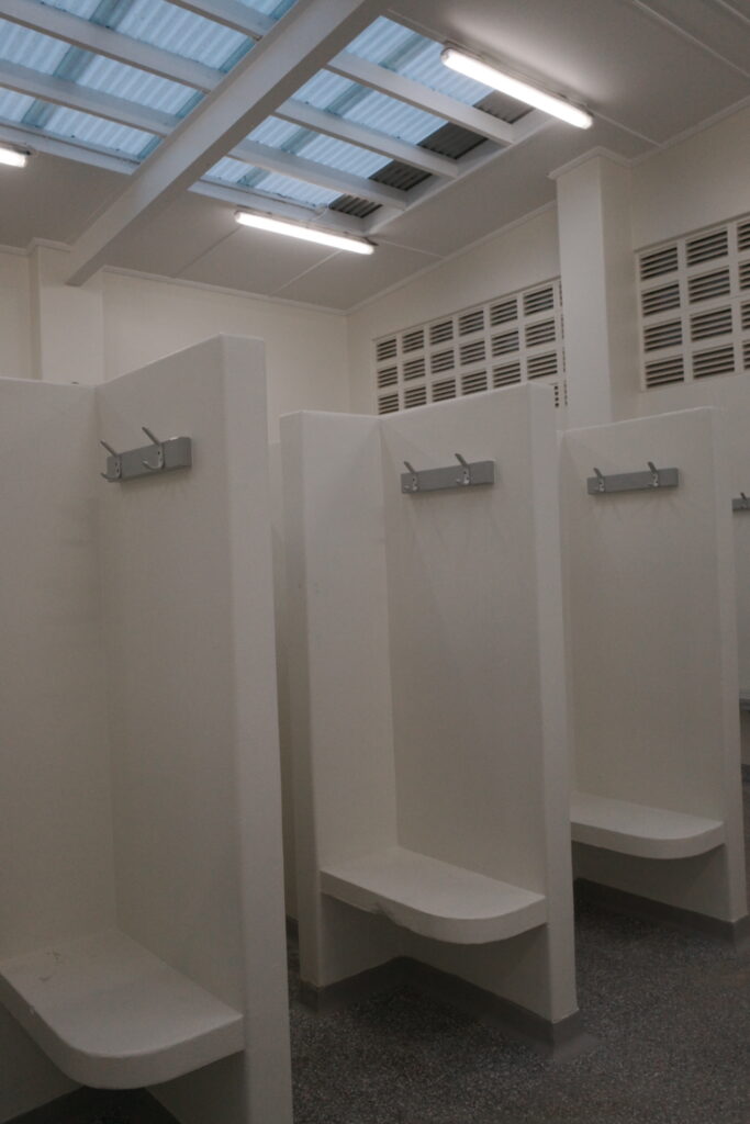 女性のシャワーはこんな感じに仕切りがあります!この並びが2列あるので、混雑しても大丈夫!