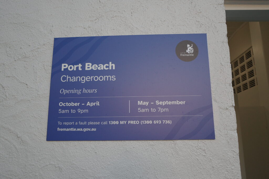 ノースフリーマントルのPort Beachで少し温かい無料インドアシャワー(やや塩味)