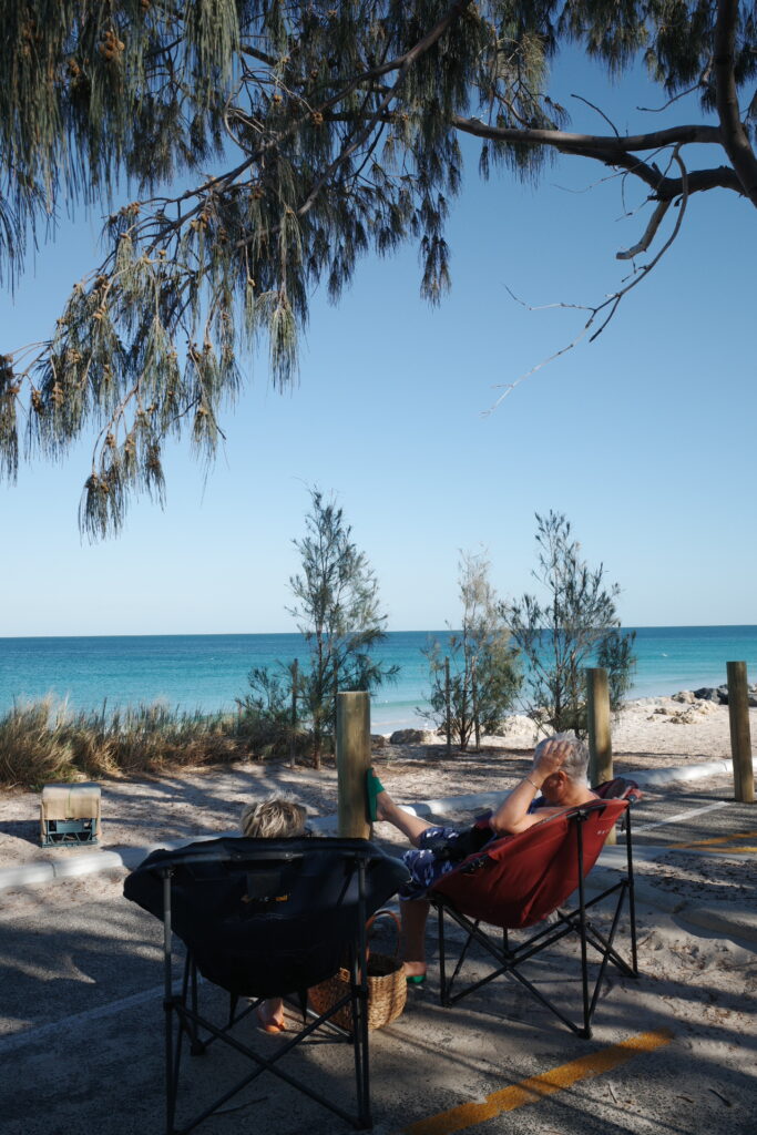 目の前の椅子でマダムなおばさまたちがチルしていて、ほっこり!海も天気もさわやか!
